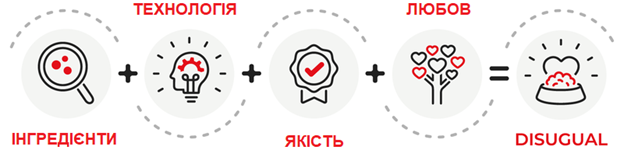 Disugual - це знання потреб вашої собаки та/або кота. Висококваліфікований персонал компанії розробляє ретельно вивчені рецепти з урахуванням того, що потрібно вашому пухнастому другу, щоб ріс здоровим і сильним!