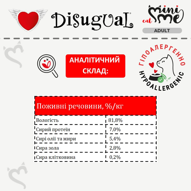 Ключові переваги вологого безглютенового протеїнового корму холістик для котів Disugual Mini Me Cat 96% Protein Chicken: