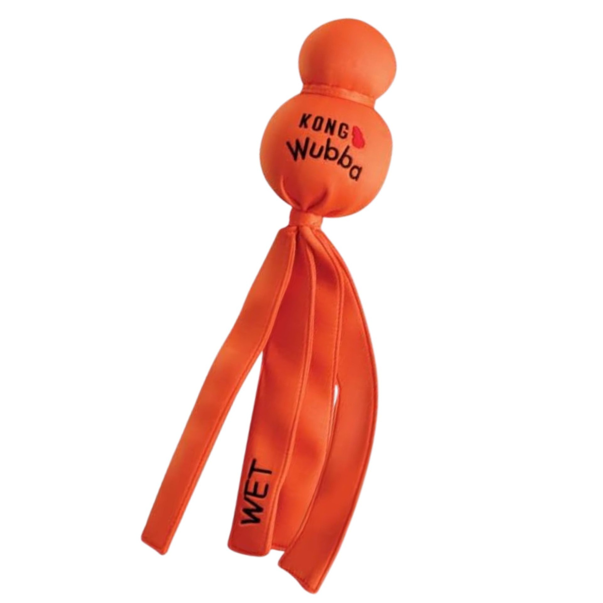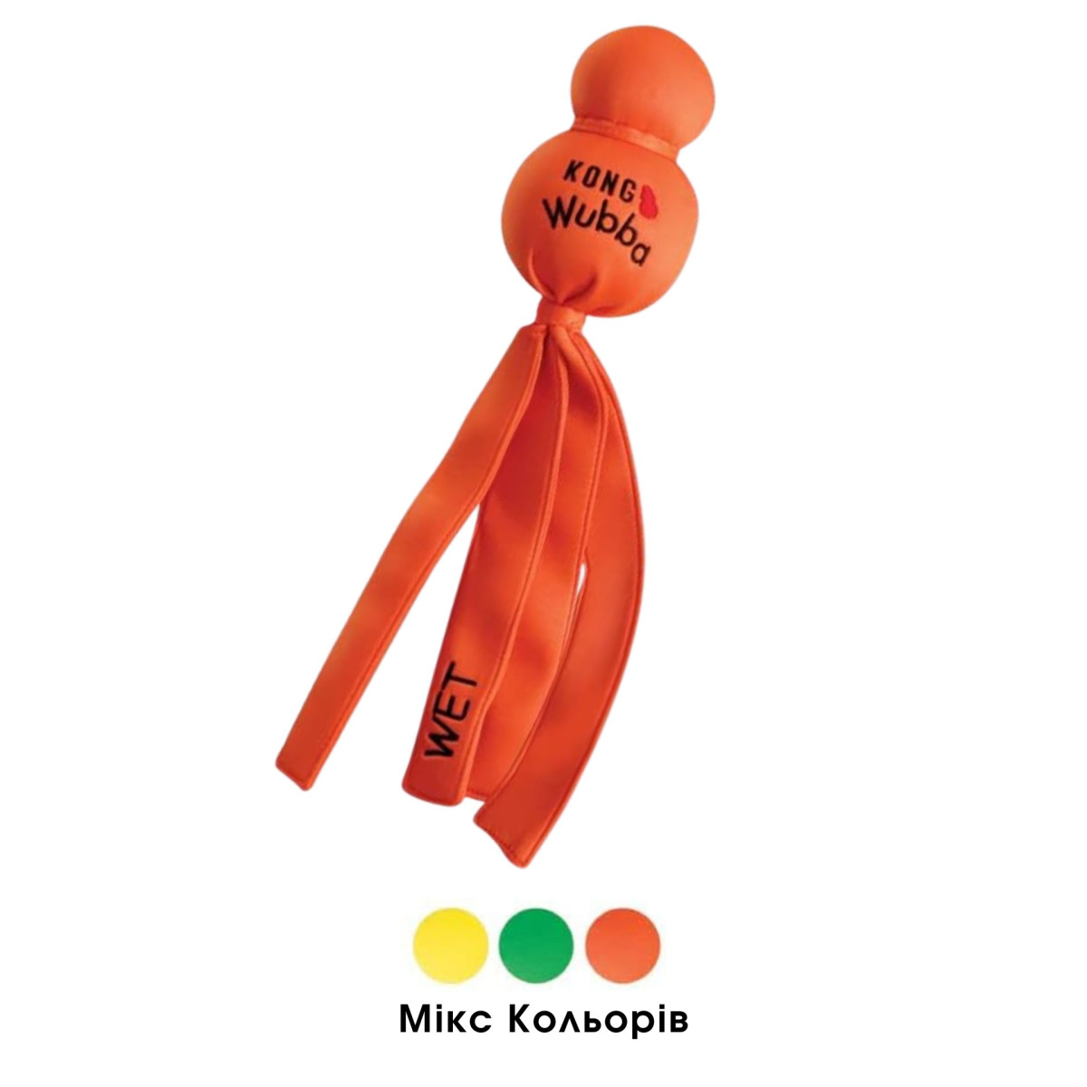 KONG Wubba Wet - це весела інтерактивна плаваюча іграшка для перетягування та кидання, яка чудово підходить як для спільної гри з собакою, так і для самостійних ігор. Довгі м’які хвости ідеально задовольняють інстинкти тряски та перетягування, а також підходять для ігор в апортування. Міцна зовнішня оболонка з посиленого нейлону у поєднанні з унікальною формою м’ячів забезпечує тривалі ігрові сесії. Собаки обожнюють пищалку у Wubba Wet, а можливість трясти іграшку, розмахуючи хвостами з боку в бік, робить кожну гру новою та захопливою.