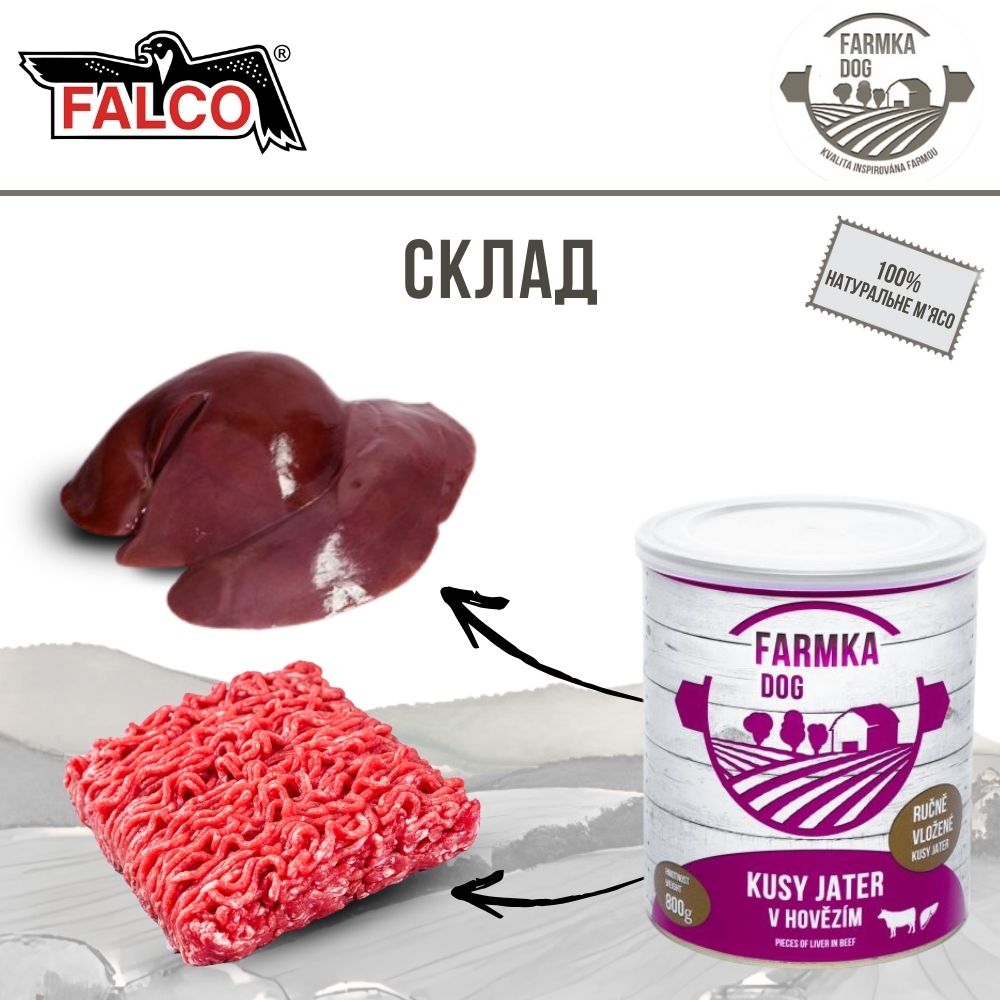 Ключові переваги консервованого м'яса для собак Шматки Печінки в Яловичому Фарші FALCO FARMKA Dog 100% Meat Liver: