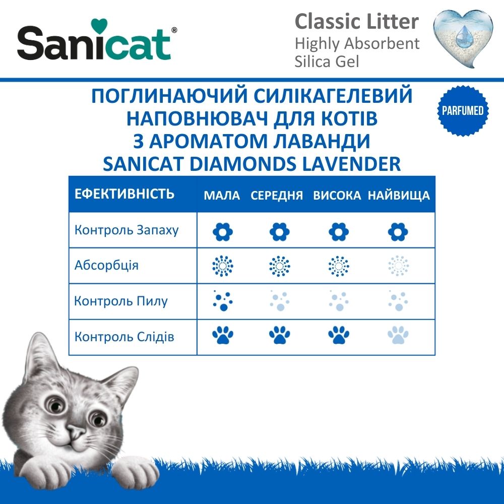 Поглинаючий силікагелевий наповнювач для котів з ароматом лаванди Sanicat Diamonds Lavender - це тривала чистота, комфорт для кота та максимальна зручність для власника. Мікропориста сила кожної гранули забезпечує сухість, свіжість і турботу про улюбленця щодня.