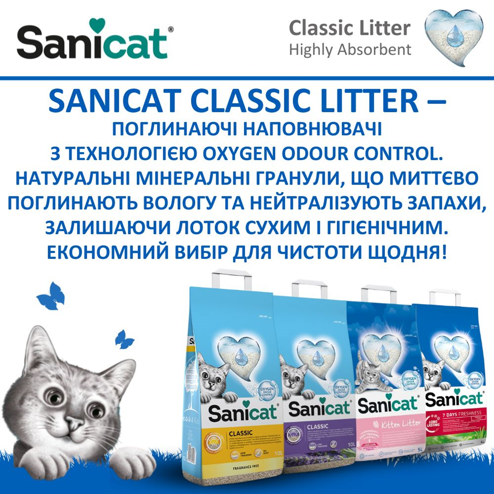 За більш ніж 60 років роботи компанія Sanicat створила безліч видів наповнювачів для котів, але зосередилася на екологічних та інноваційних рішеннях, одним з яких є лінійка поглинаючих наповнювачів для котів Sanicat Classic Litter.