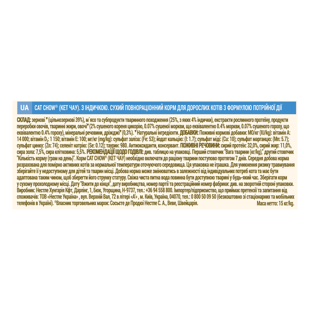 Сухий корм для з індичкою для дорослих котів з формулою потрійної дії Purina Cat Chow 3 in 1 With Turkey