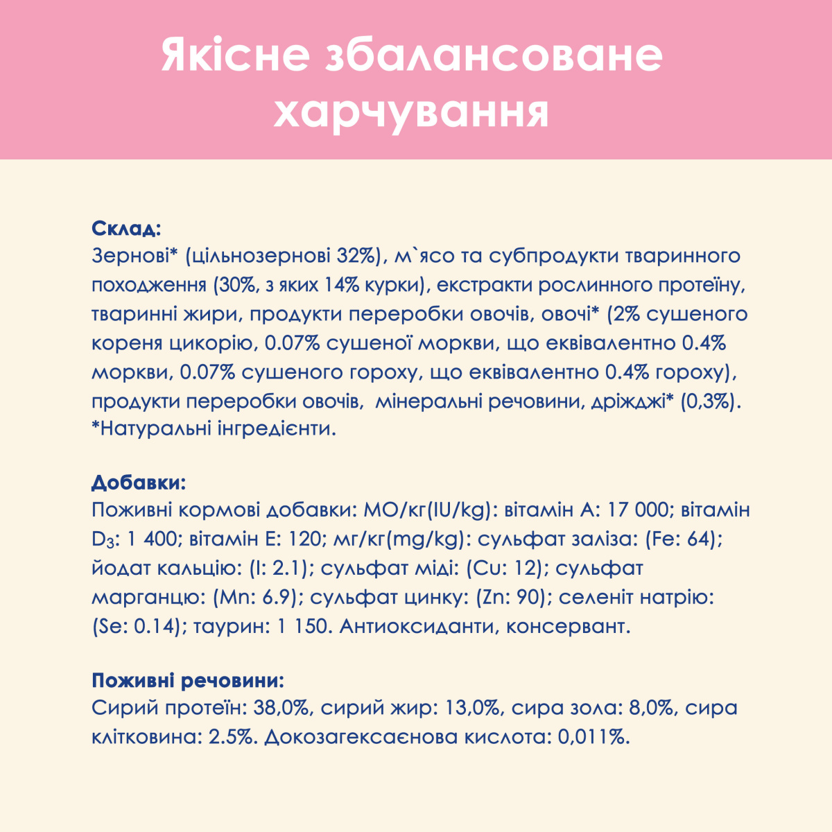 • Спеціалізовані формули — для стерилізованих котів, чутливого травлення чи контролю ваги