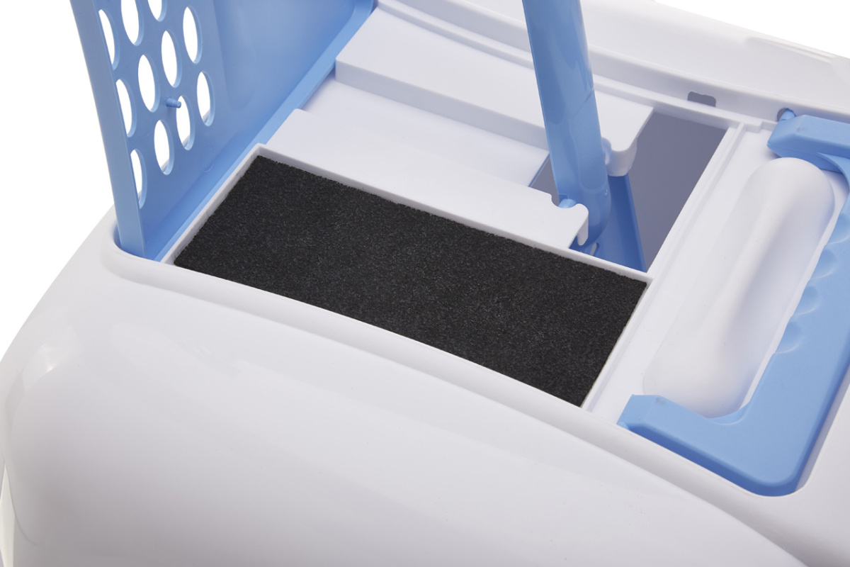 Змінний вугільний фільтр. Ефективно поглинає та нейтралізує неприємні запахи, не дозволяючи їм поширюватись по квартирі або будинку. Завдяки цьому закритий туалет для кота ідеально підходить для використання у ванній кімнаті, коридорі чи житловому просторі.