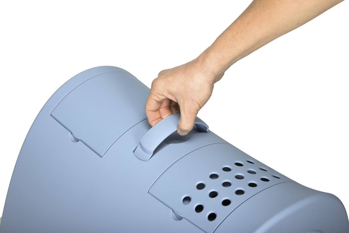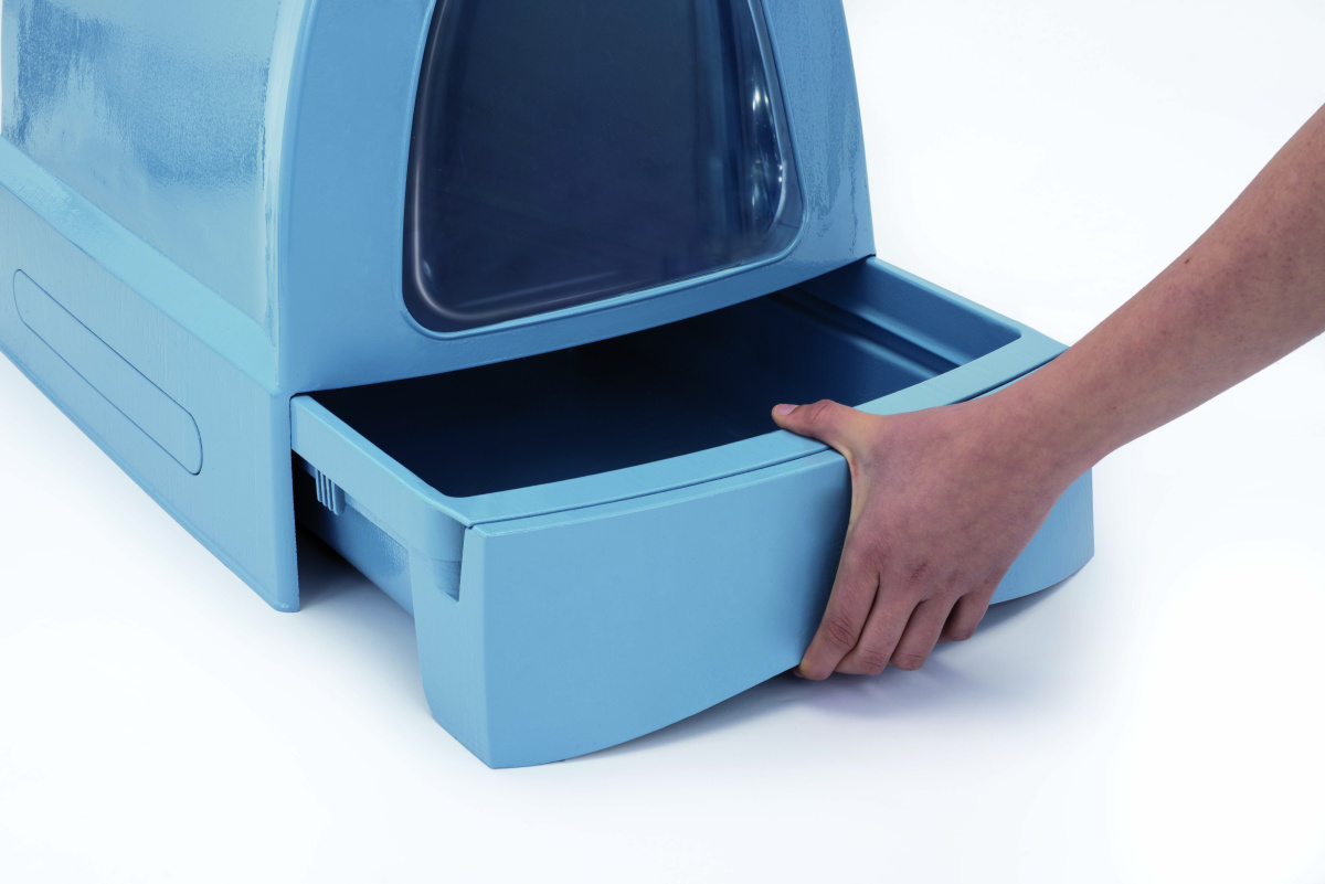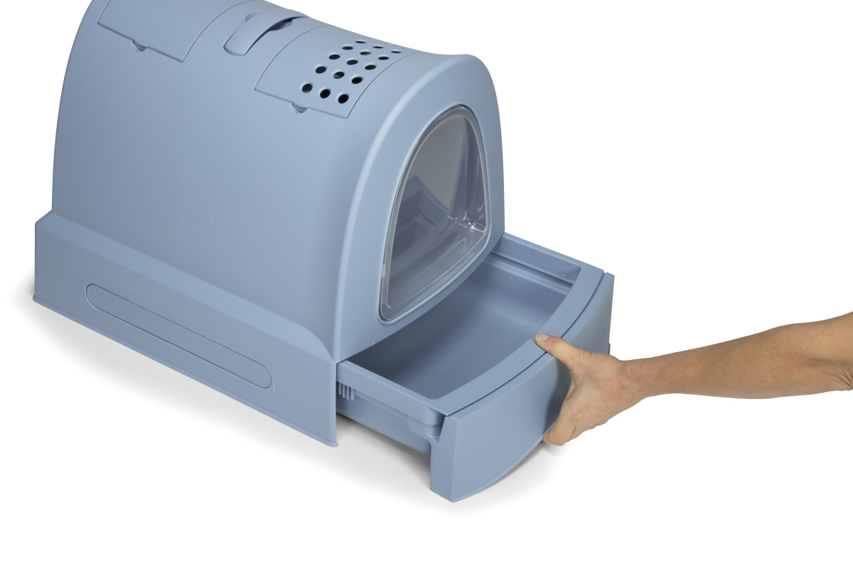 Ергономічна форма корпусу. Продумана з урахуванням потреб котів різного розміру, що робить закритий туалет придатним як для кошенят, так й для дорослих котів. Високі стінки та закрита конструкція особливо актуальні для активних котів, які люблять копати наповнювач. Гладка внутрішня поверхня закритого туалету для котів легко миється, не вбирає запахи та дозволяє підтримувати високий рівень чистоти без зайвих зусиль.