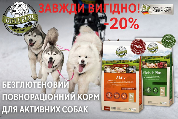-20% на Сухой безглютеновый корм для собак Bellfor Premium Pur