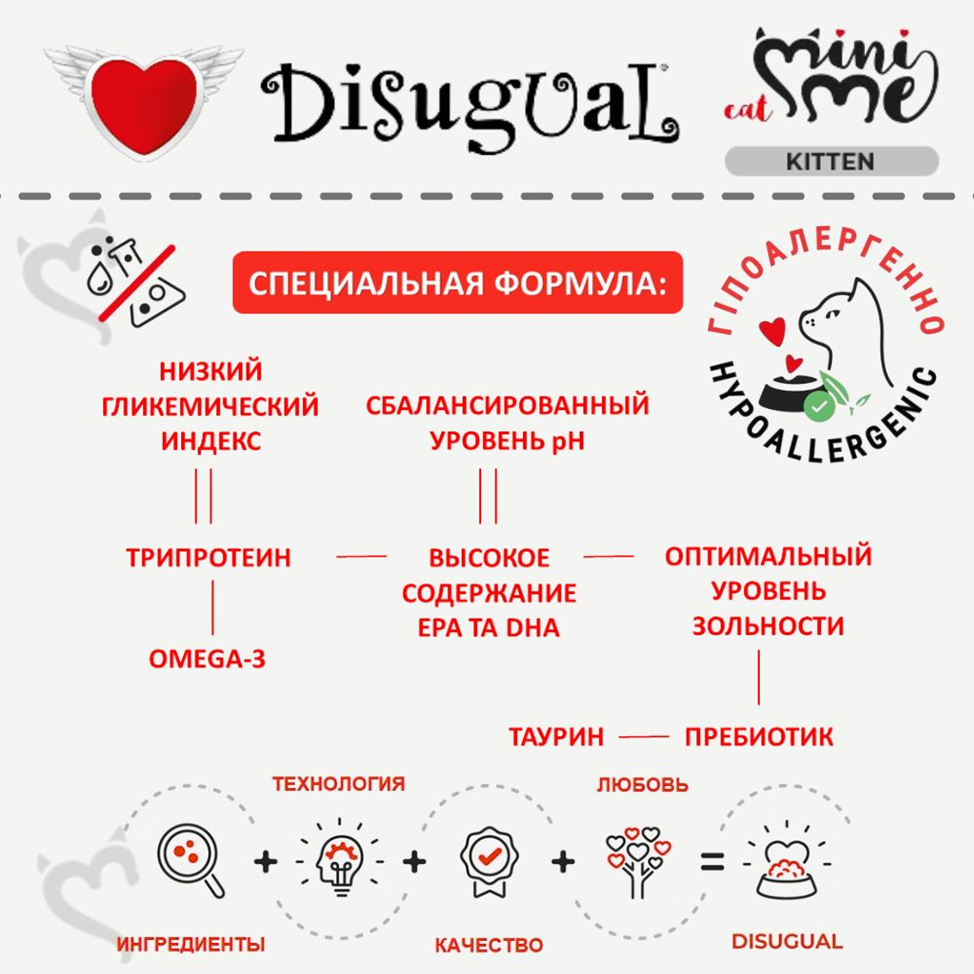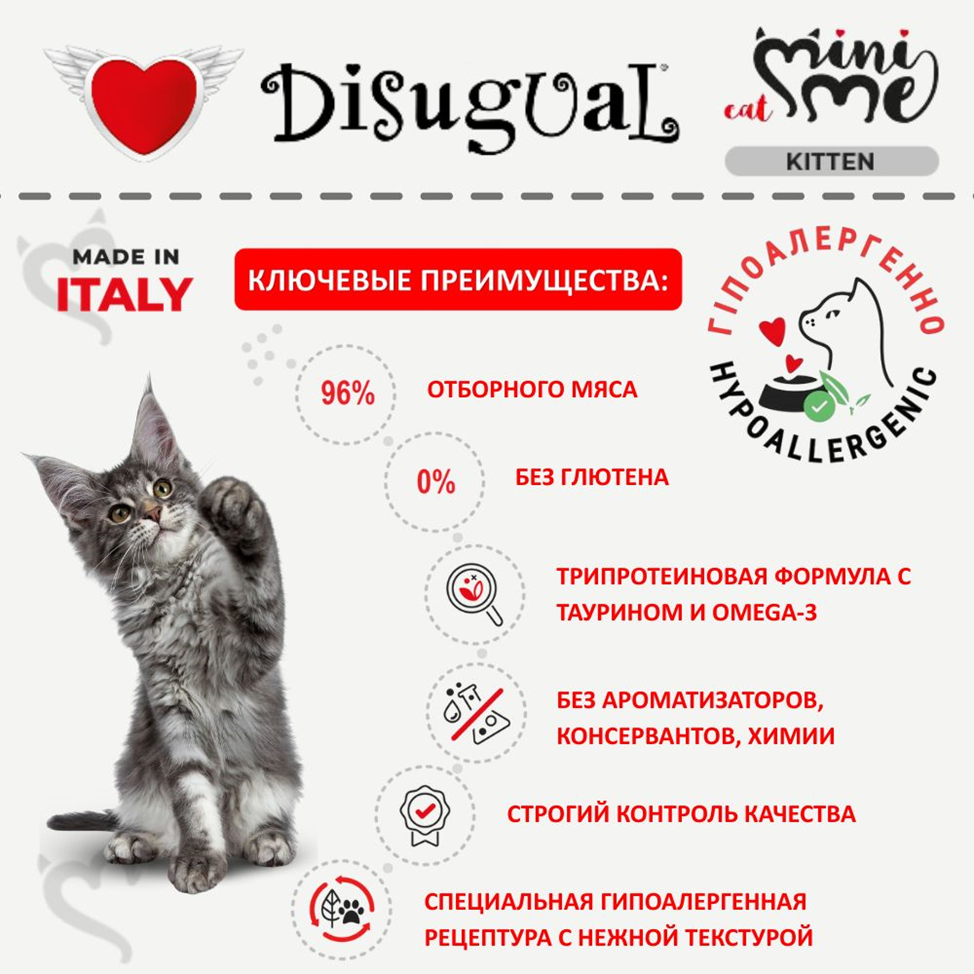 Ключевые преимущества влажного безглютенового протеинового корма холистик для котят Disugual Mini Me Kitten 96% Protein Chicken: