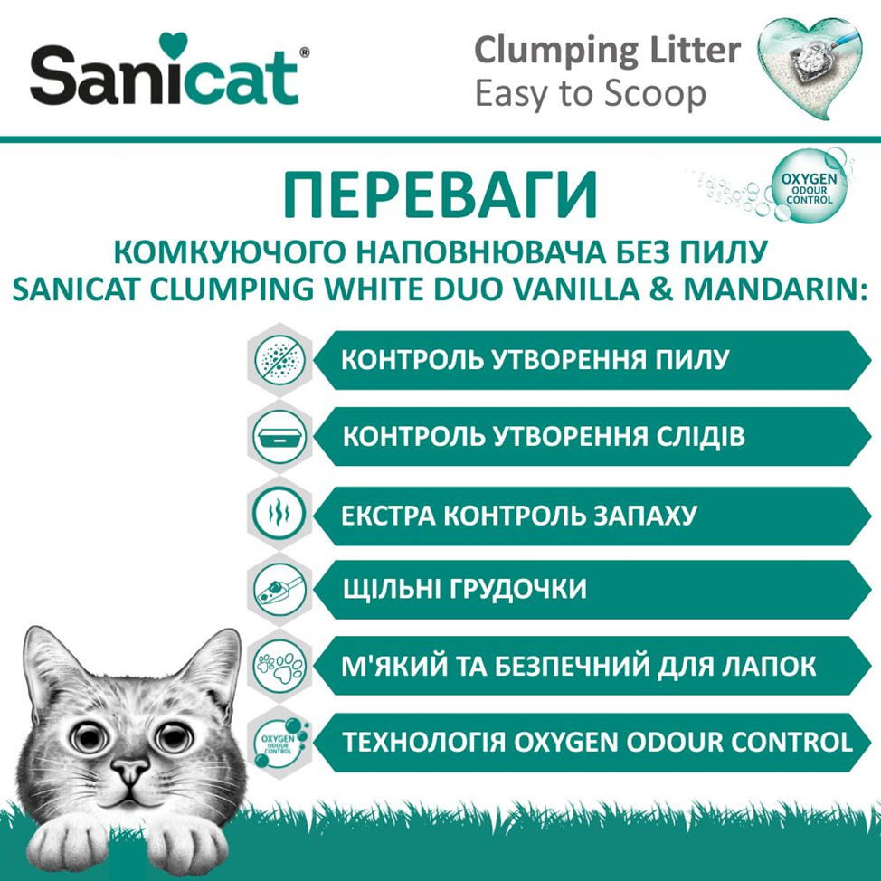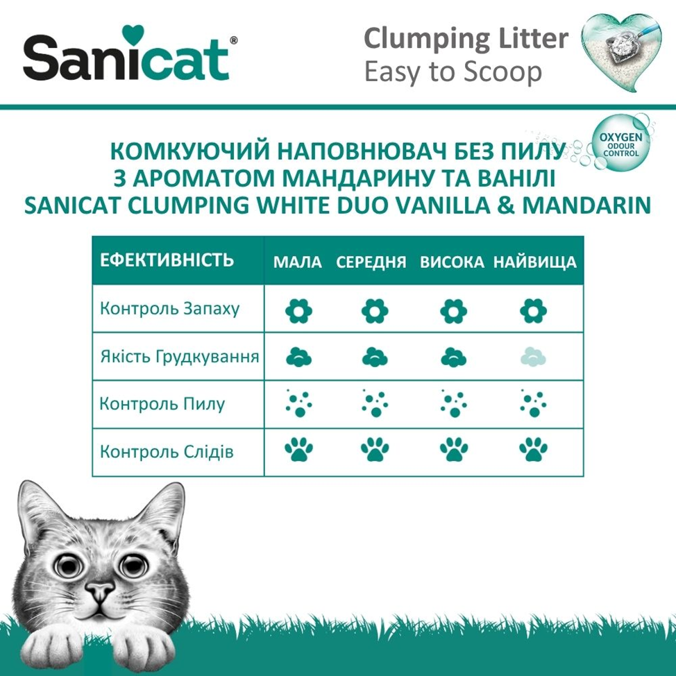 Комкующийся белый бентонитовый наполнитель для котов с ароматом мандарина и ванили Sanicat Clumping White Duo Vanilla & Mandarin - это когда чистота, комфорт и современные технологии объединяются в каждой грануле!