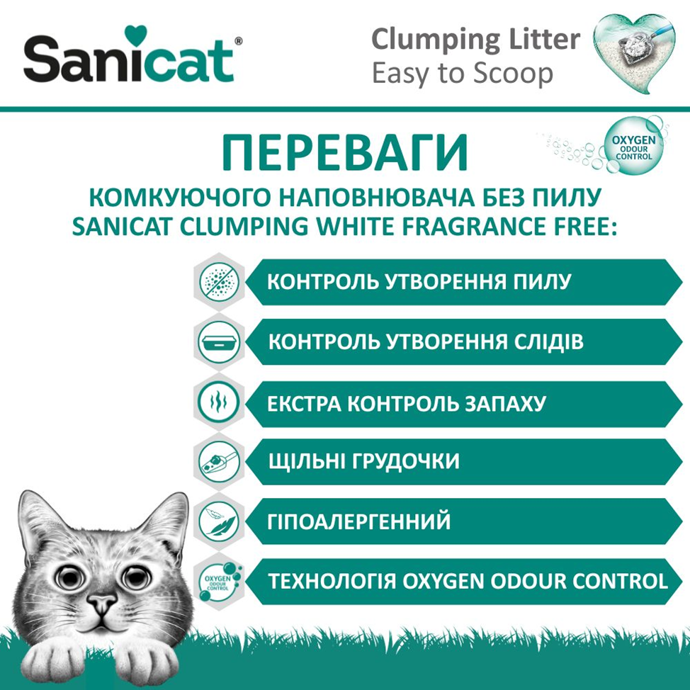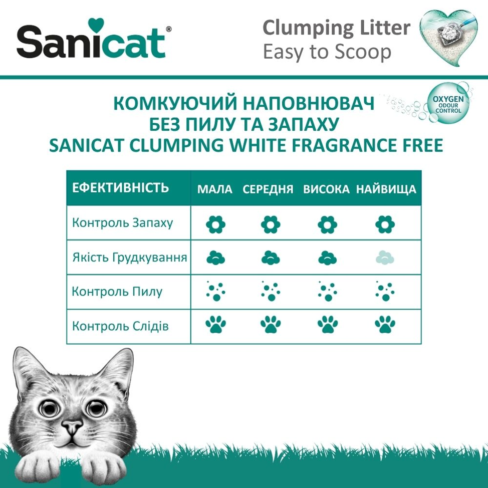Комкующийся белый бентонитовый наполнитель для котов без пыли и запаха Sanicat Clumping White Fragrance Free - это когда чистота, комфорт и современные технологии объединяются в каждой грануле!