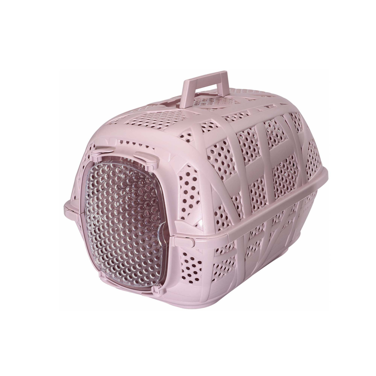 Оригинальная переноска с очаровательным дизайном с отверстиями для идеальной вентиляции и прозрачной пластиковой дверцей с удобными застежками дающими возможность открывать и снимать ее.