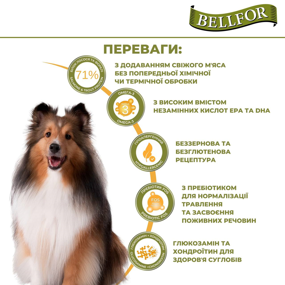 Преимущества гипоаллергенного корма с лососем и форелью холистик для собак Bellfor Wildbach Schmaus: