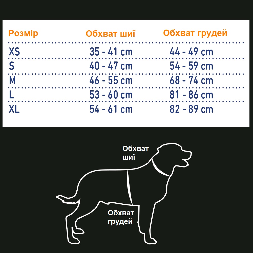 Довжина спинки 25 см, Обхват шиї 35 - 41 см, Обхват грудей 44 - 49 см