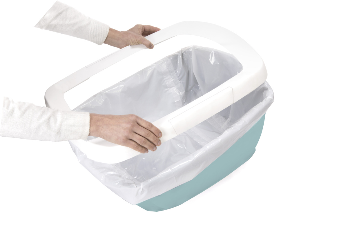 Дополнительный ободок для фиксации пакетов. Практичный дополнительный ободок надежно фиксирует пакеты для лотка, не давая им съезжать или заворачиваться внутрь во время использования. Благодаря этому наполнитель остается на месте, а уборка становится быстрее и аккуратнее. Такая деталь значительно упрощает уход за лотком и помогает поддерживать чистоту без лишних усилий.