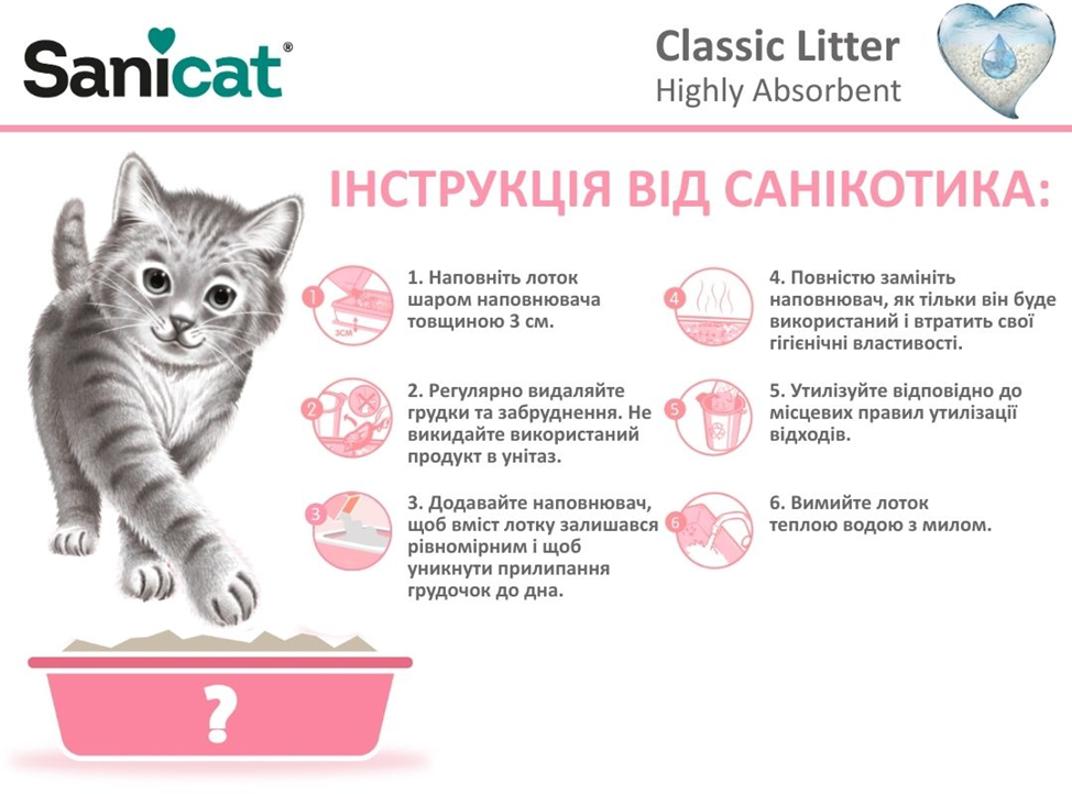 Наполнитель для котят от Sanicat - это идеальный выбор для первых шагов малыша к лотку. Созданный из нежных, безопасных и натуральных компонентов, он обеспечивает мягкость под лапками, быстрое впитывание и отсутствие резких запахов. Такой наполнитель помогает котенку быстро адаптироваться, а вам - поддерживать чистоту и гигиену в доме без лишних усилий.