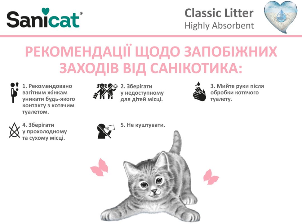 Безопасность для котенка: нежные мелкие гранулы гипоалергенного наполнителя мягкие и не повреждают чувствительные лапки котенка. Впитывающий наполнитель для котенка Sanicat Kitten Litter Easy Training не пылит, не прилипает к шерсти и исключает нанесение вреда дыхательным путям питомца.